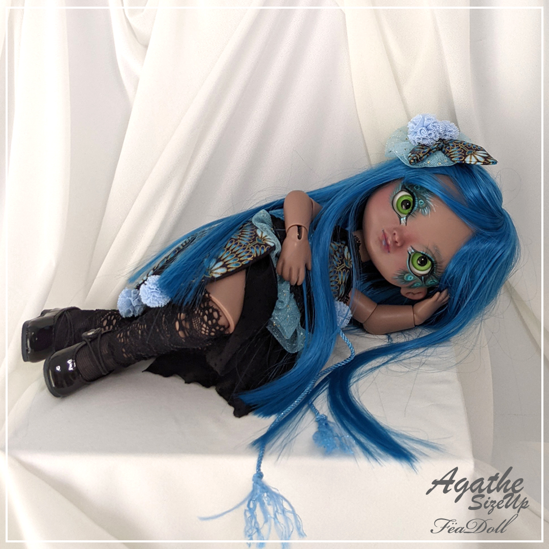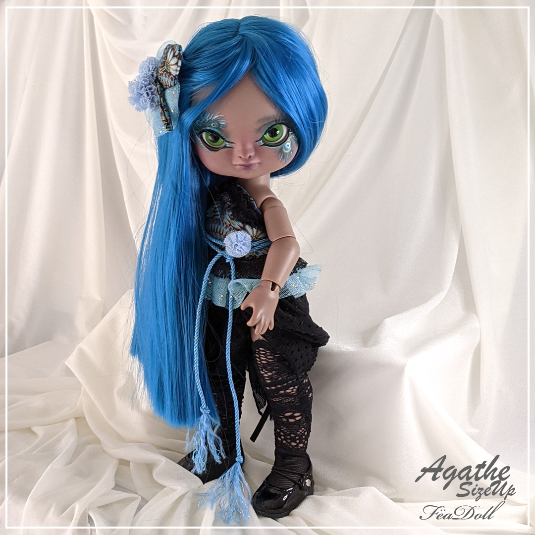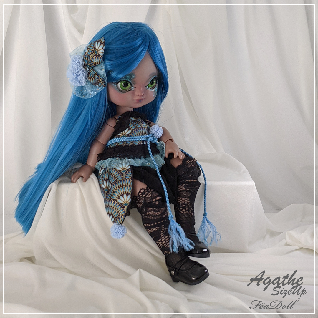 Agathe is a doll 26,5 cms high. She will be delivered complete, sanded and assembled, without make-up and not customised.