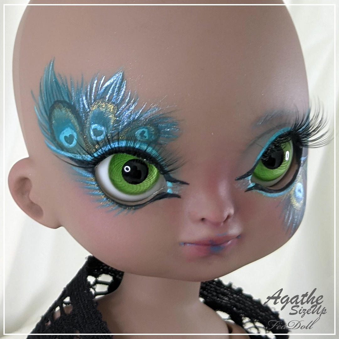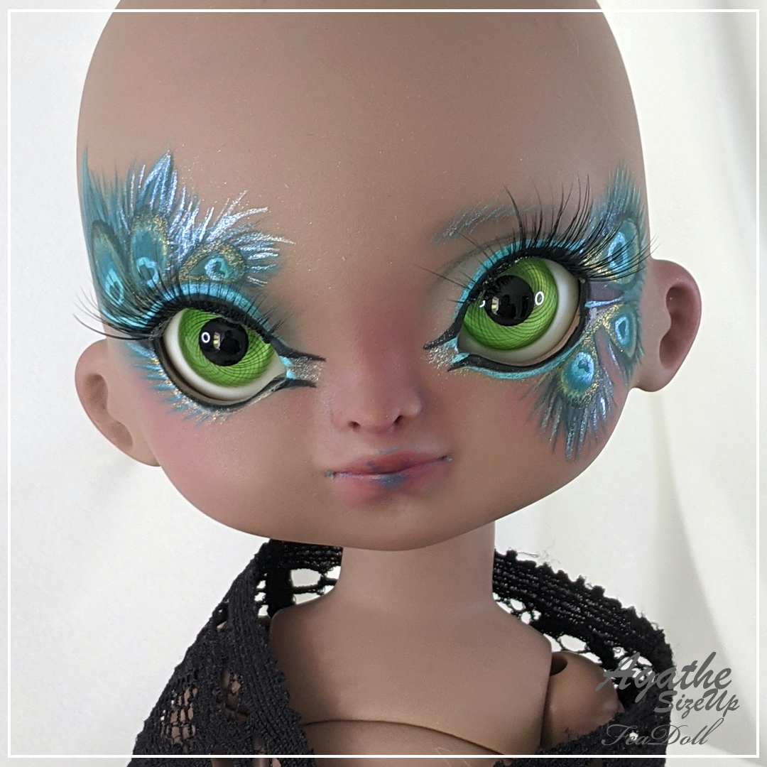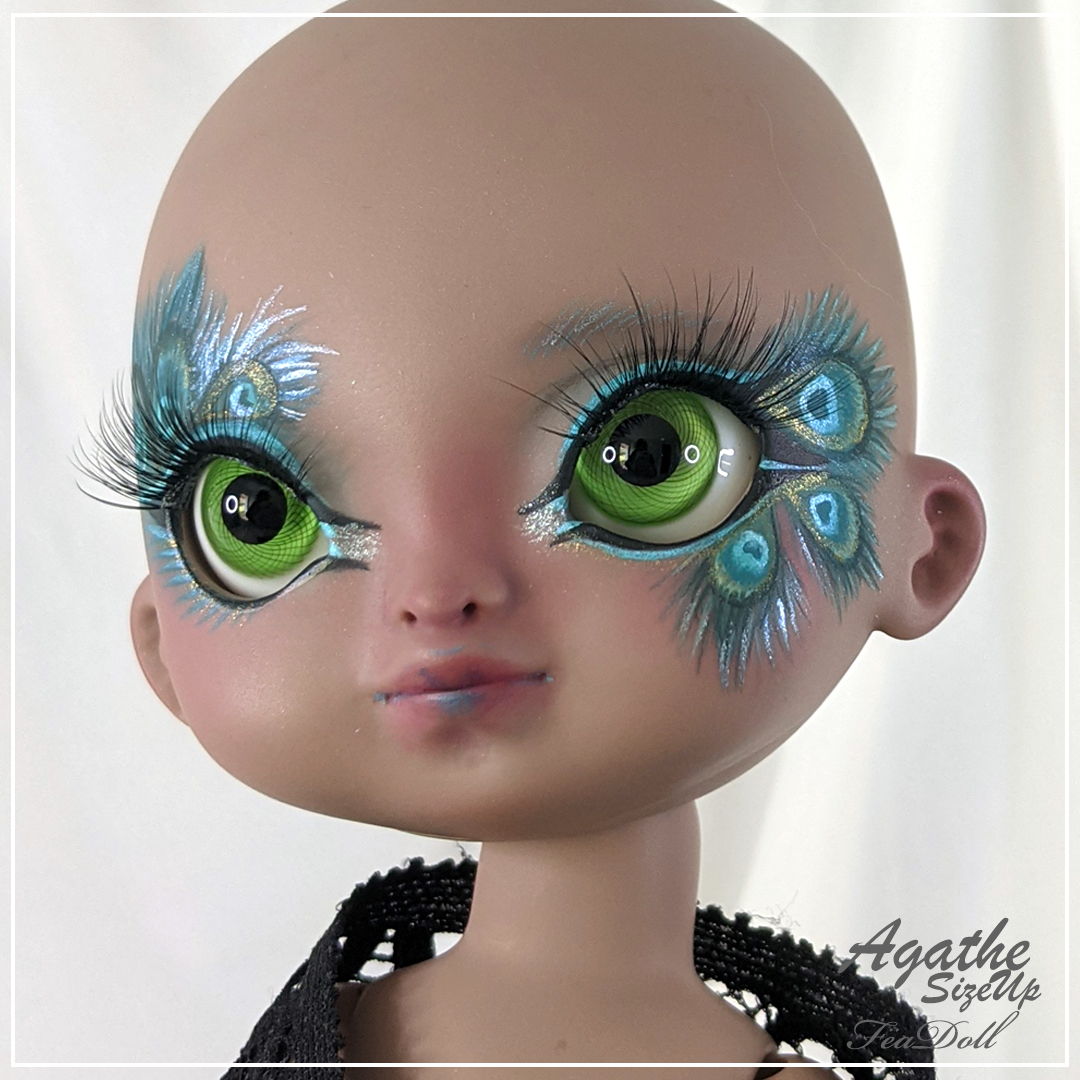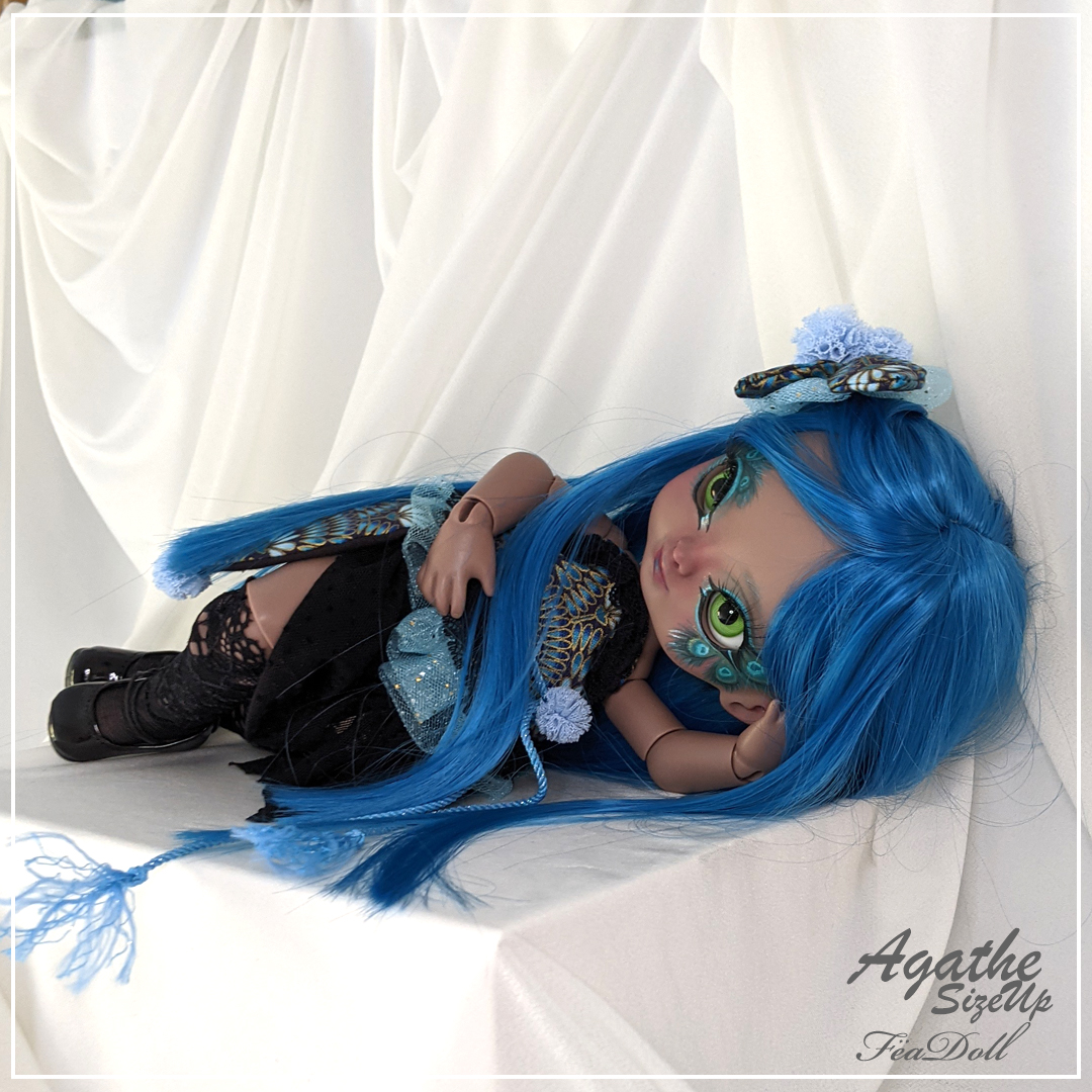 Agathe is a doll 26,5 cms high. She will be delivered complete, sanded and assembled, without make-up and not customised.